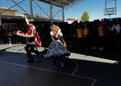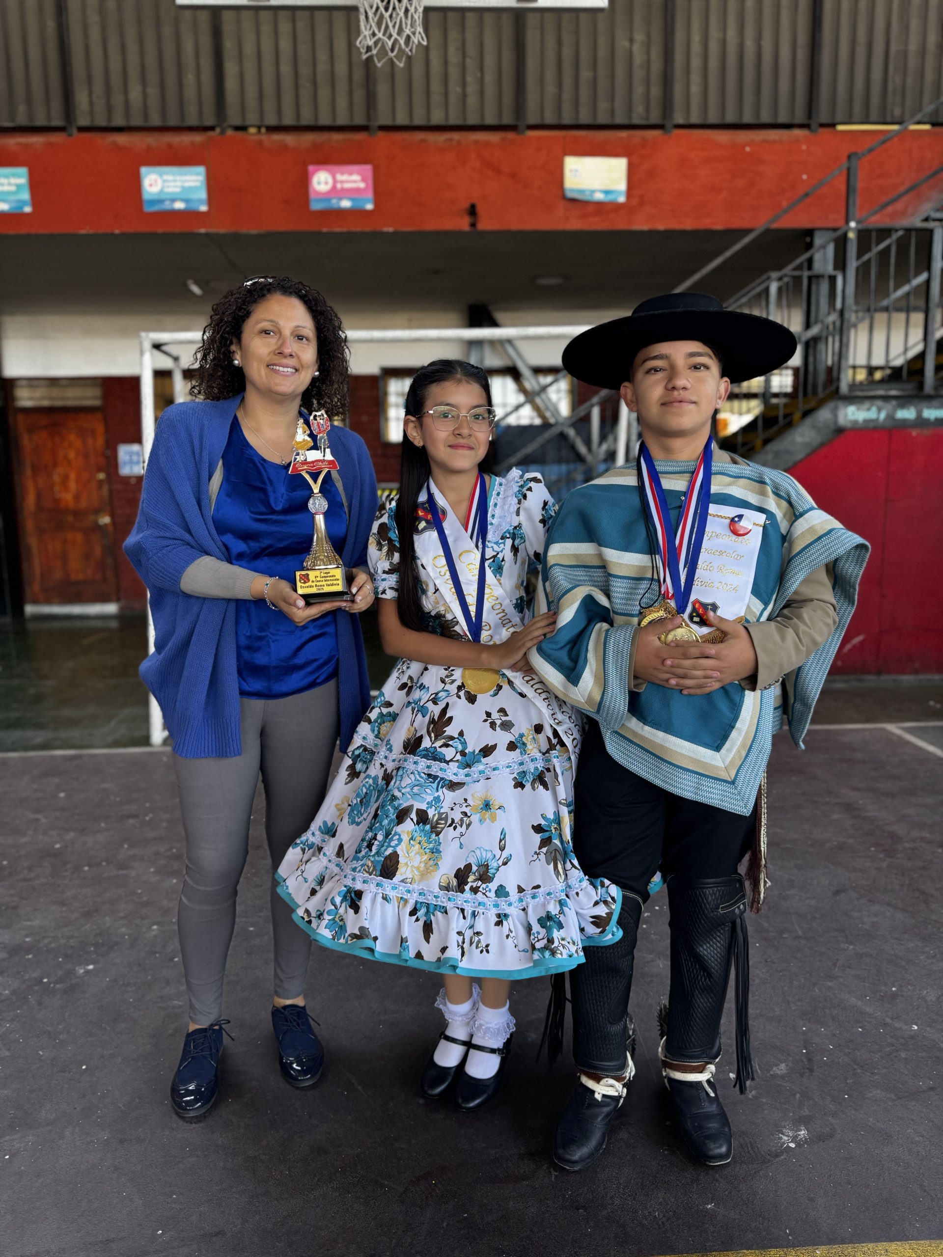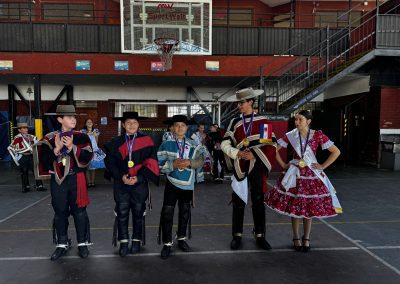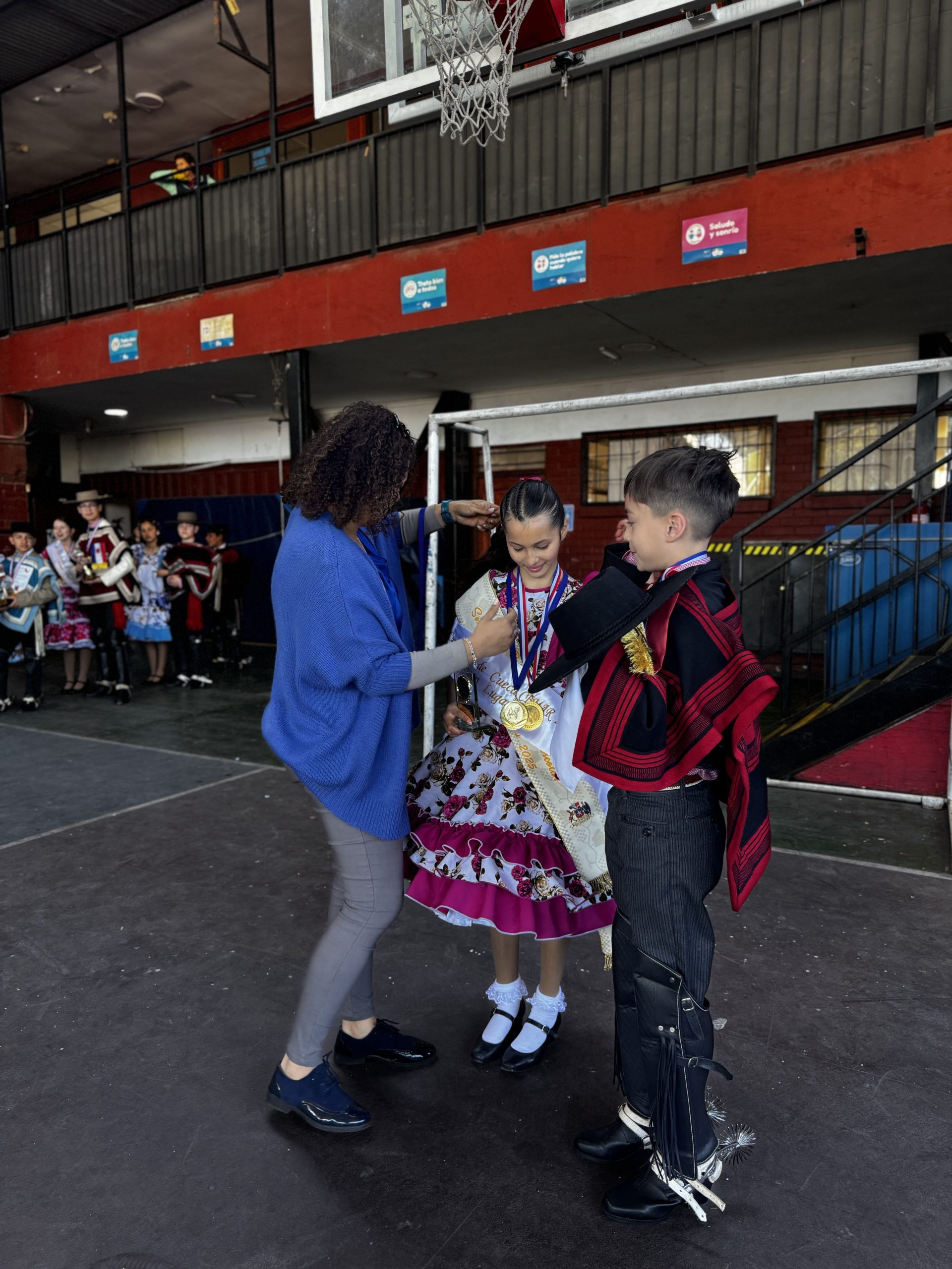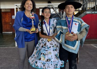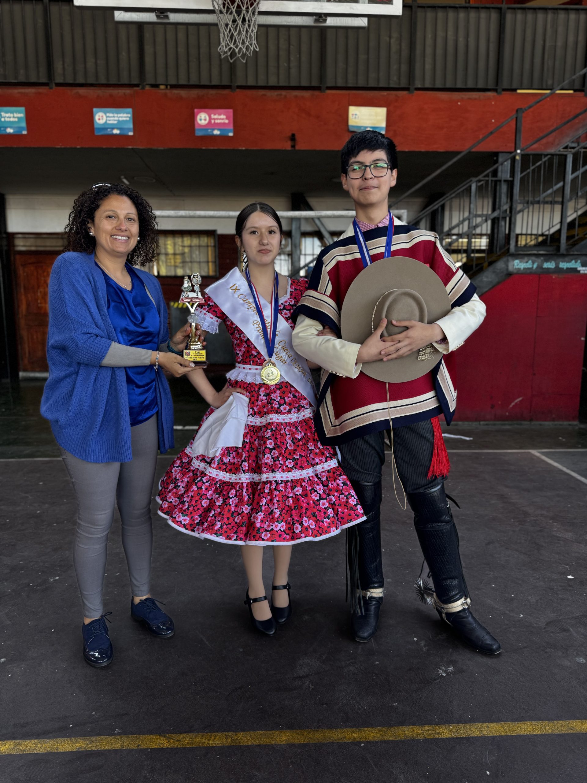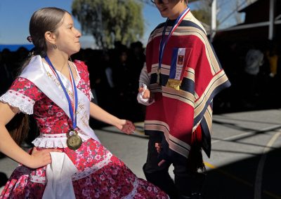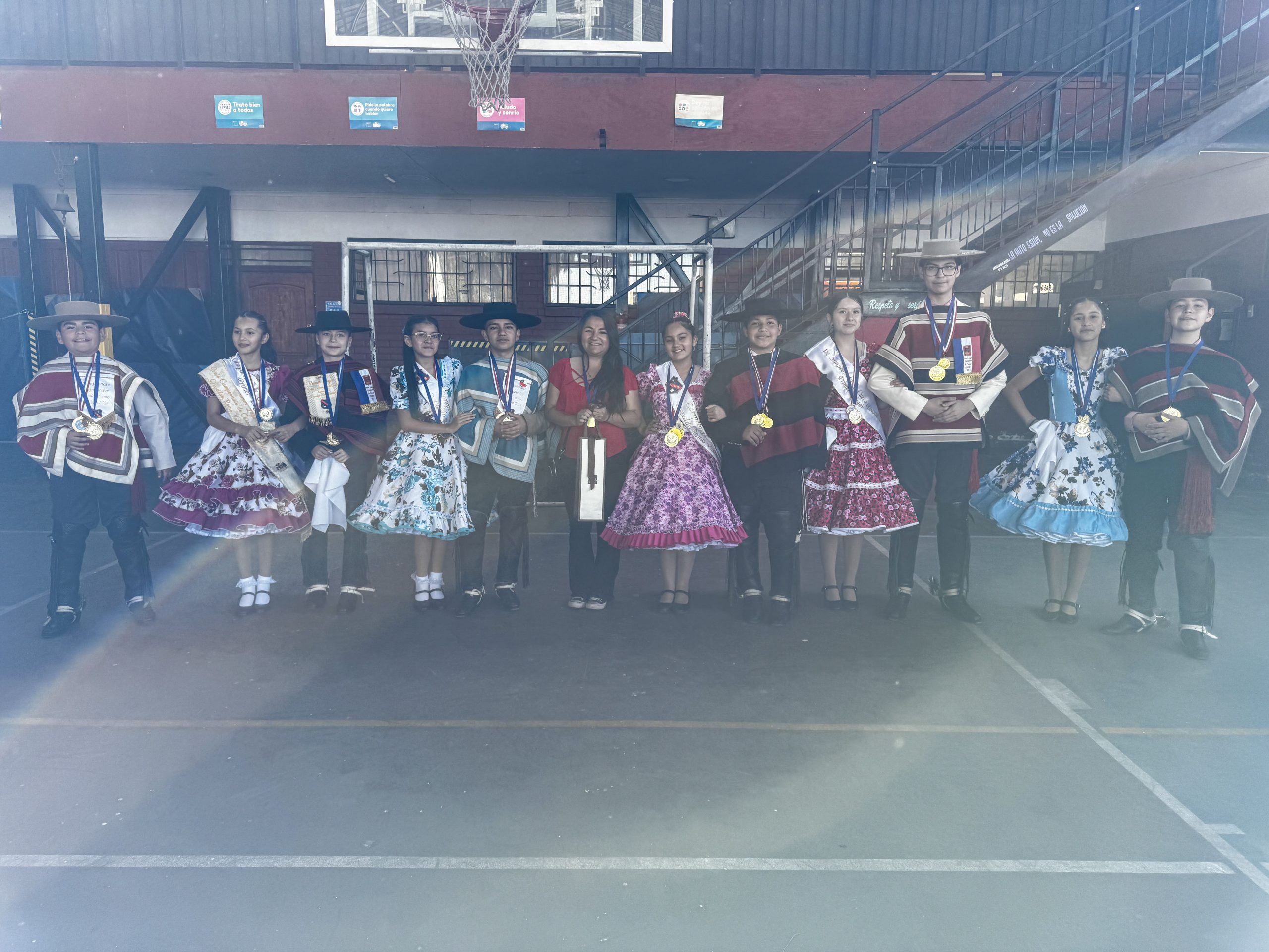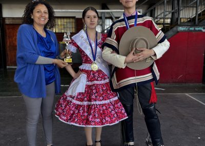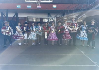En un acto general, los y las estudiantes que participaron en diversos campeonatos de cueca compartieron con orgullo sus logros, haciendo entrega de sus trofeos al establecimiento como muestra de gratitud por el apoyo y la formación recibidos en cada competencia.