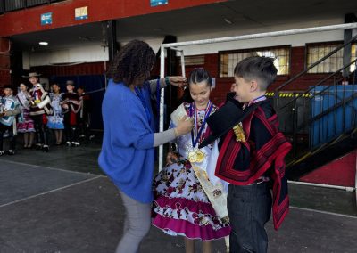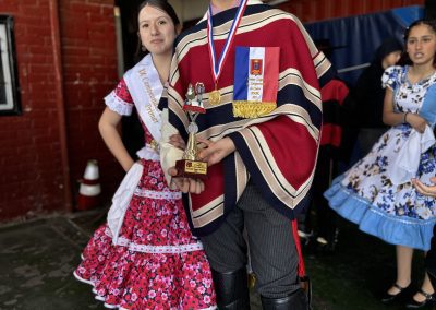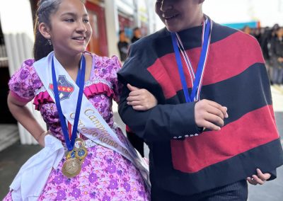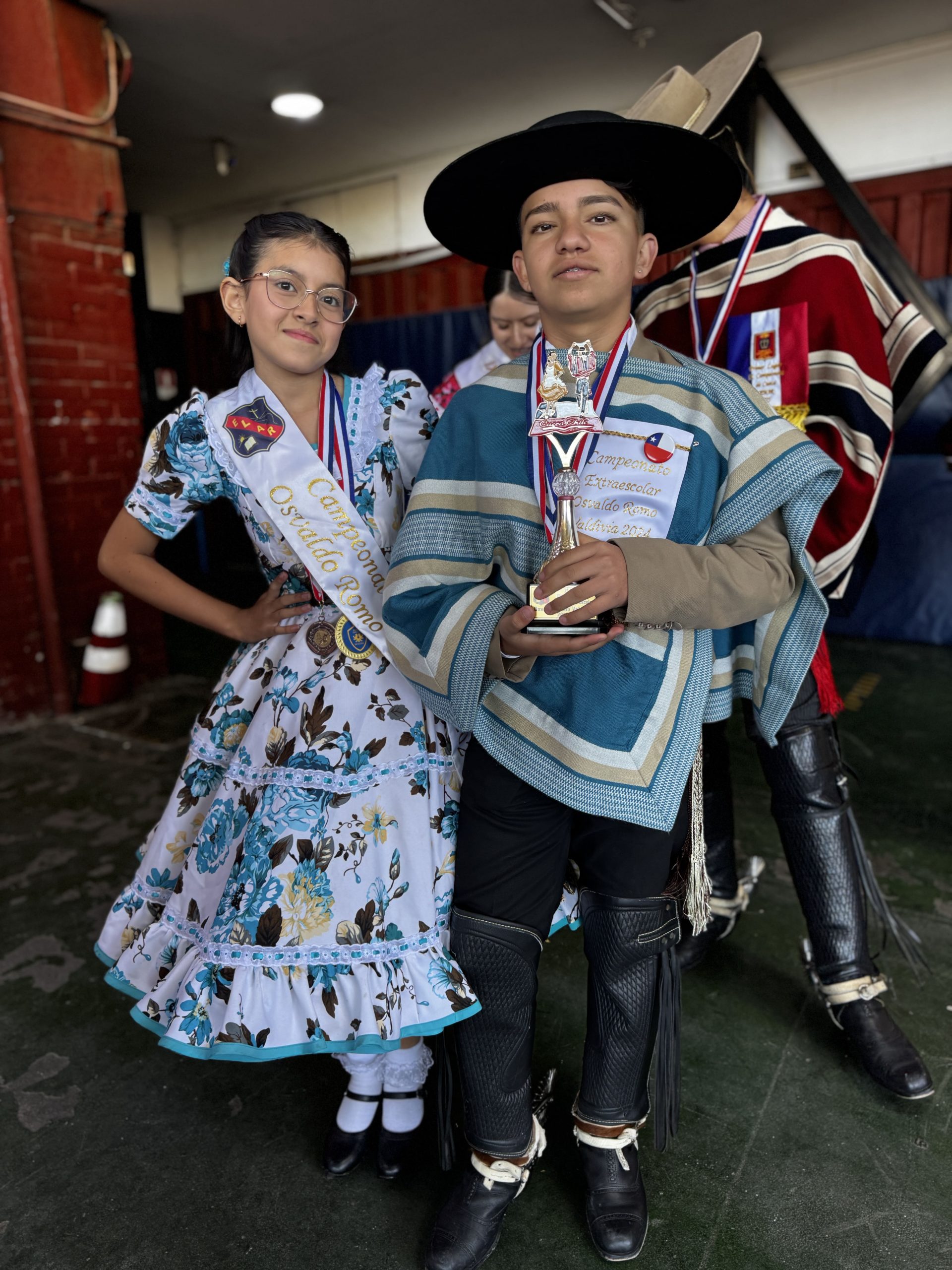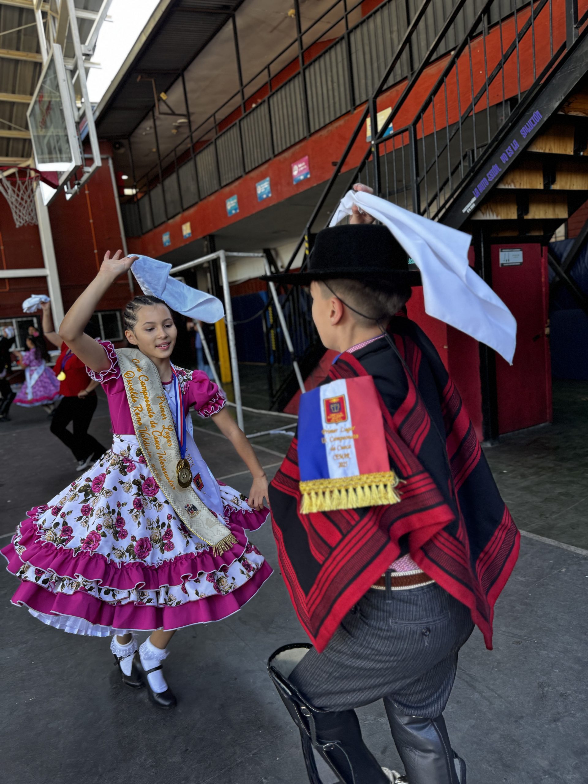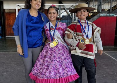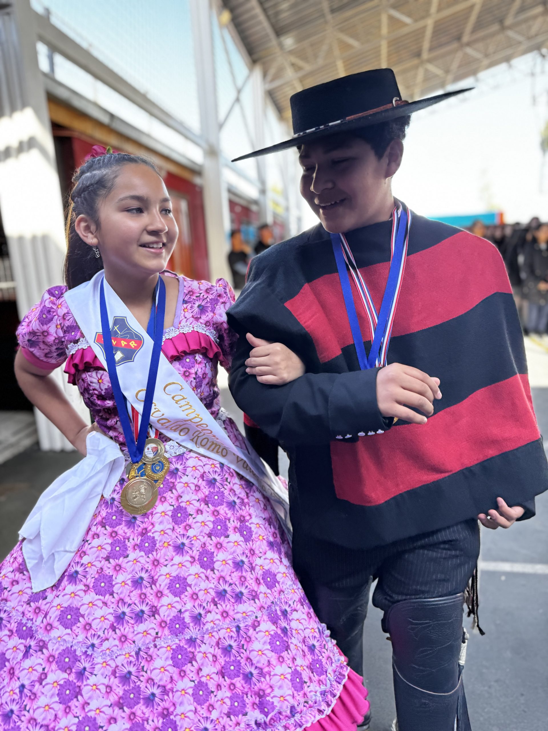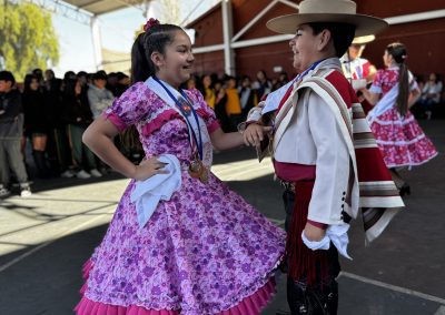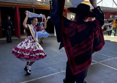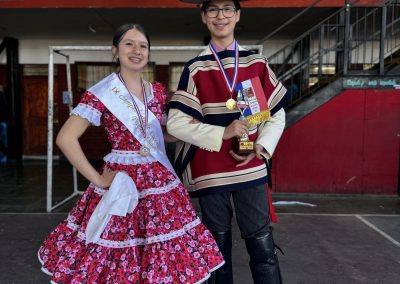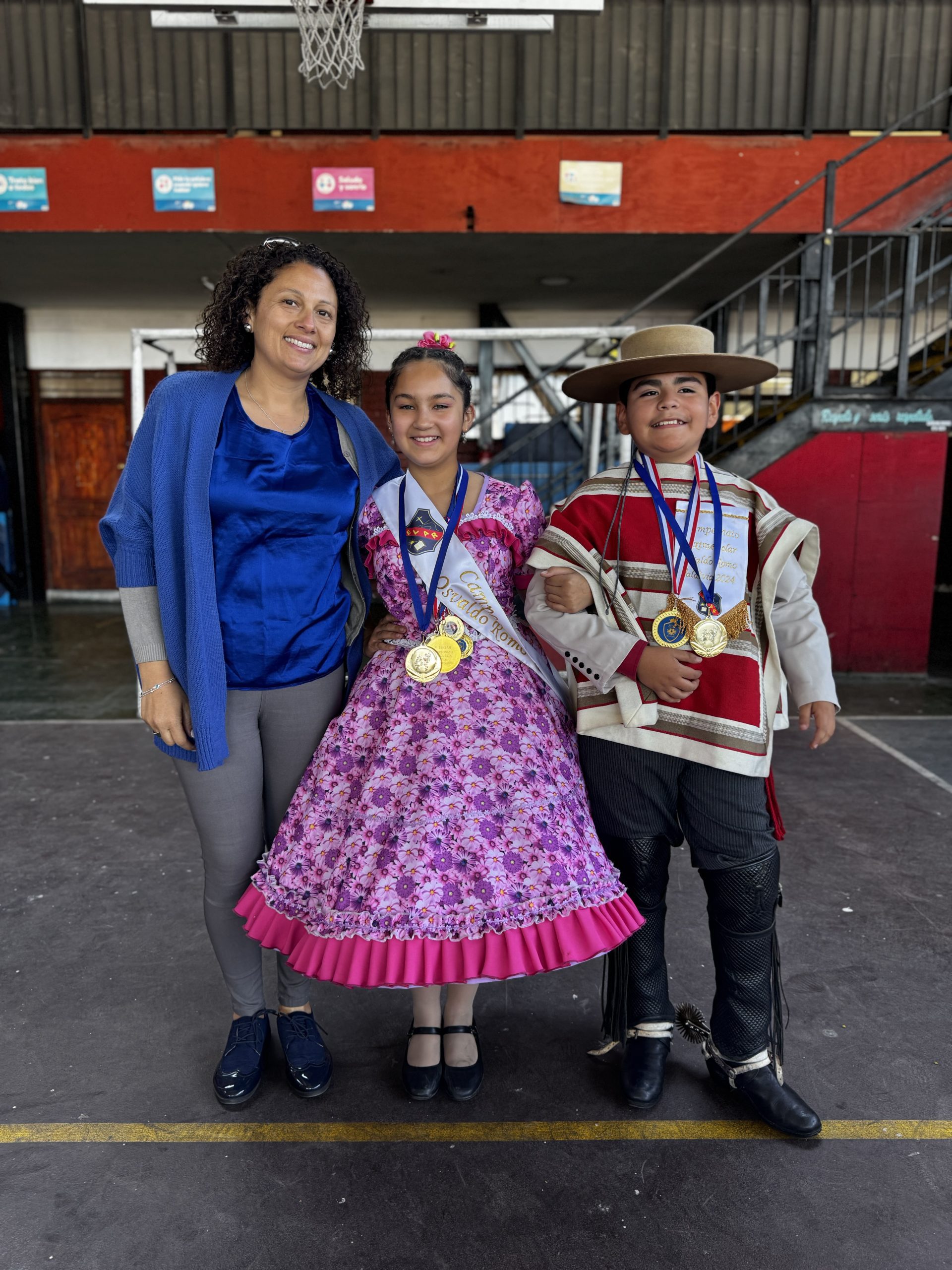 En un acto general, los y las estudiantes que participaron en diversos campeonatos de cueca compartieron con orgullo sus logros, haciendo entrega de sus trofeos al establecimiento como muestra de gratitud por el apoyo y la formación recibidos en cada competencia.